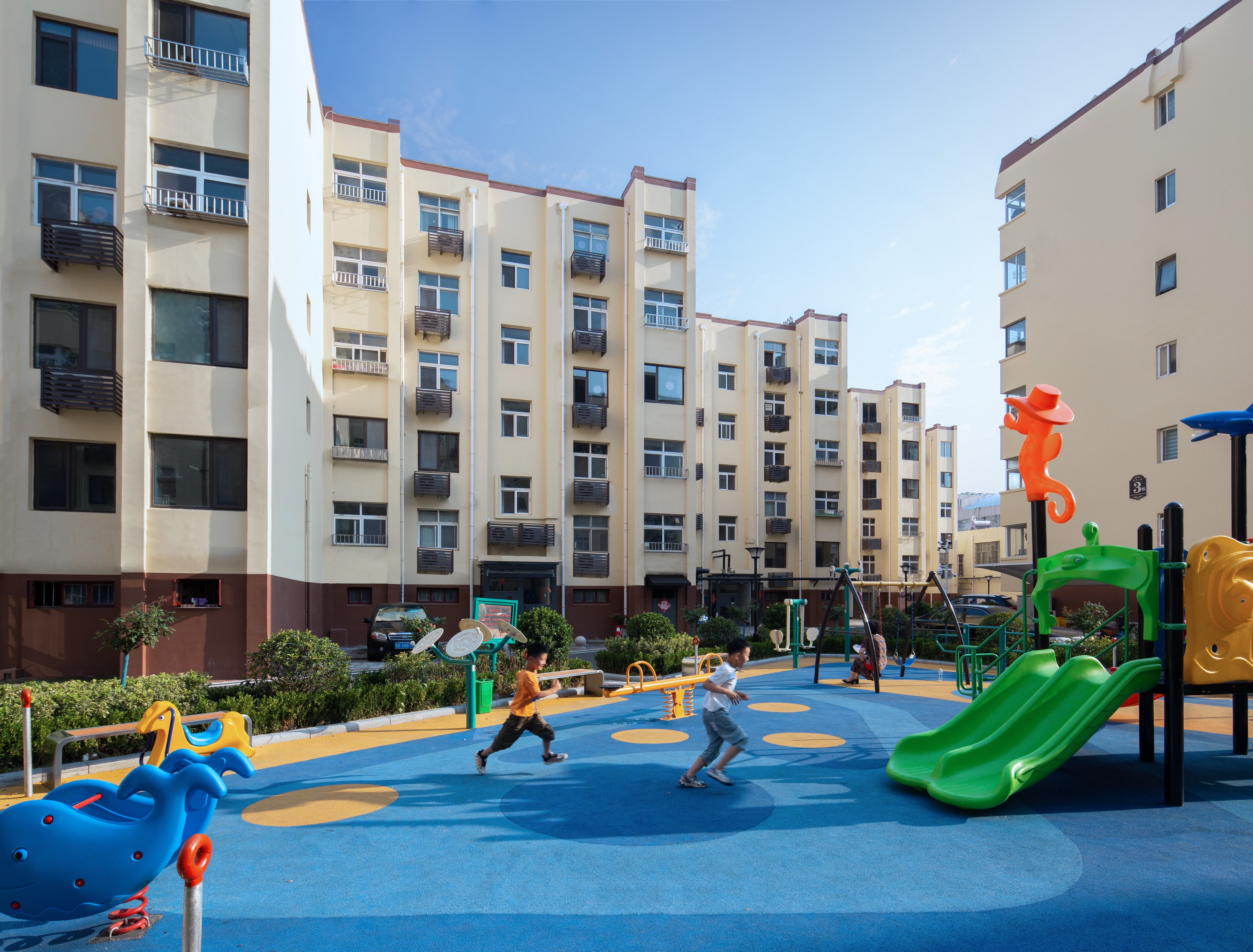 在青岛胶州市老旧小区的改造项目推进过程中,建筑团队控制表现策略,以城市色彩为导向,选择经济高效的方式更新建筑外貌。与此同时,项目团队积极发挥居民监督权,引导居民参与全过程,充分发挥桥梁作用,将各方的利益诉求转变为现实可行的策略,并综合土建、植物等多重分区,改造功能性社区公共空间。青岛胶州市老旧小区的改造项目立足于场景改造,根据不同小区的实际情况因地制宜地进行流程化的再建造,形成独具胶州特色的改造样本,为全国老旧小区改造开拓出新道路。胶州老旧小区改造项目涉及“美丽中国”理念中“形象示范”“参与共创”“人居环境”“因地制宜”“社会协同”等关键词,项目破除传统小区改造思维,以造福百姓、惠及民生的信念成为具备全国级推广意义的老旧小区改造“样本”之作。