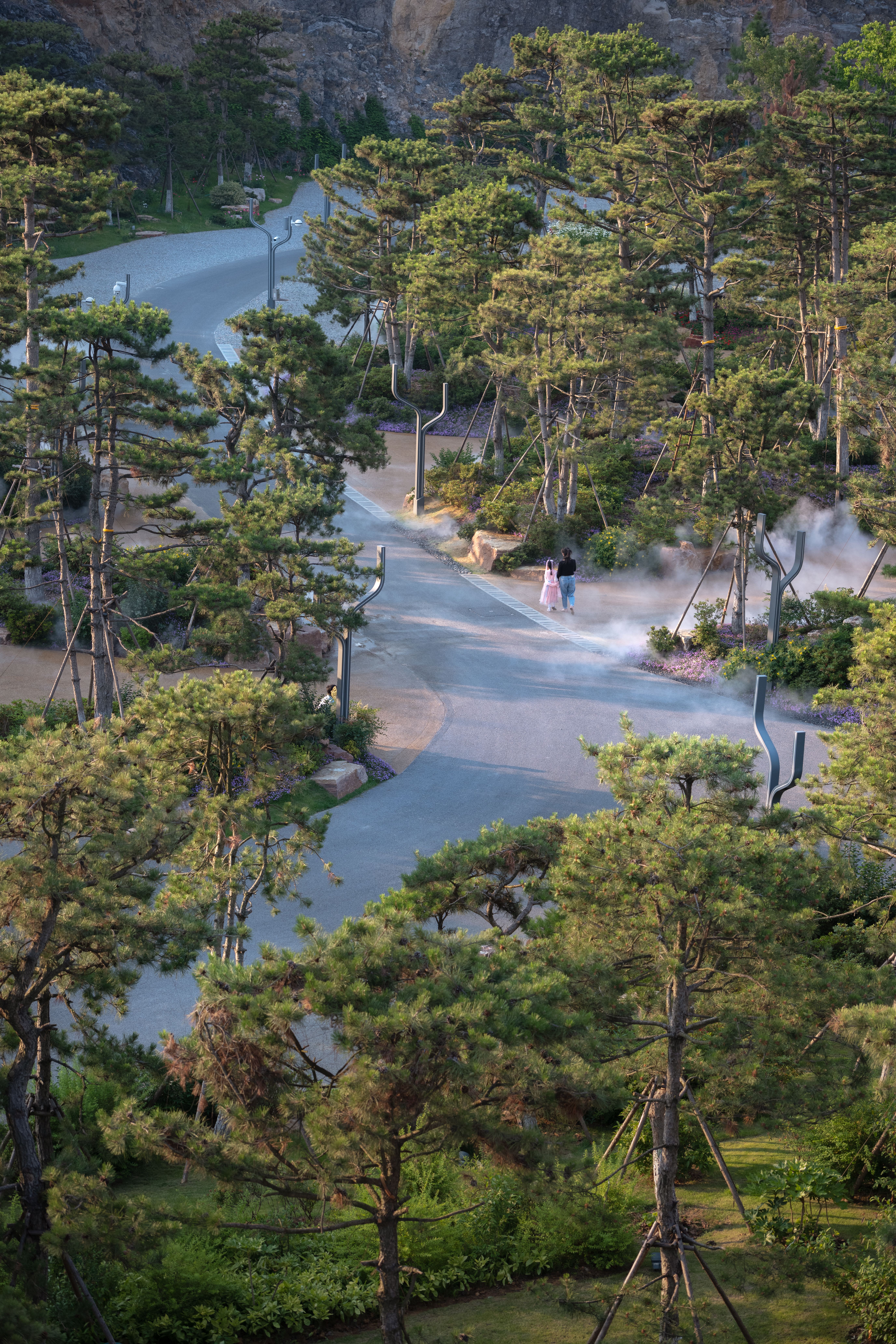 园区融合多元功能,包括可容纳2500人的露天剧场、与崖壁融合的“深坑酒店”、AI导览与无人驾驶服务等,增强游客互动体验。生态修复采用雾森系统调节微气候,结合边坡加固与植被恢复。截至目前,项目已成为南京新兴文旅地标,兼具生态、文化与技术复合价值。